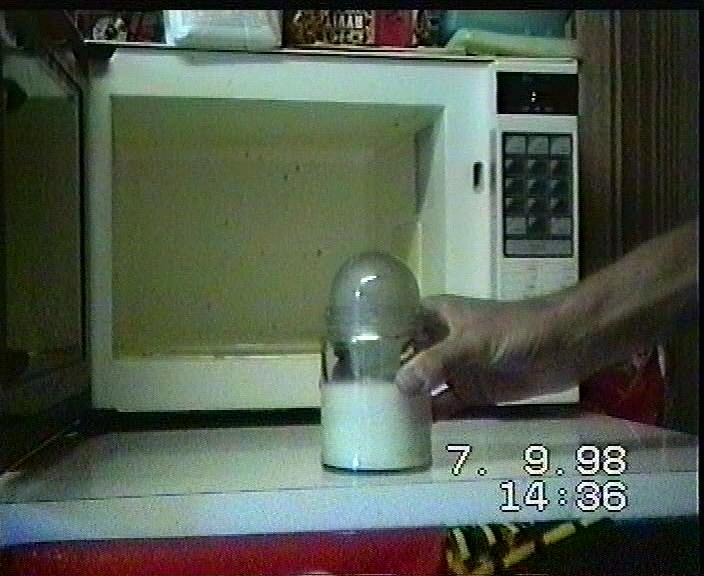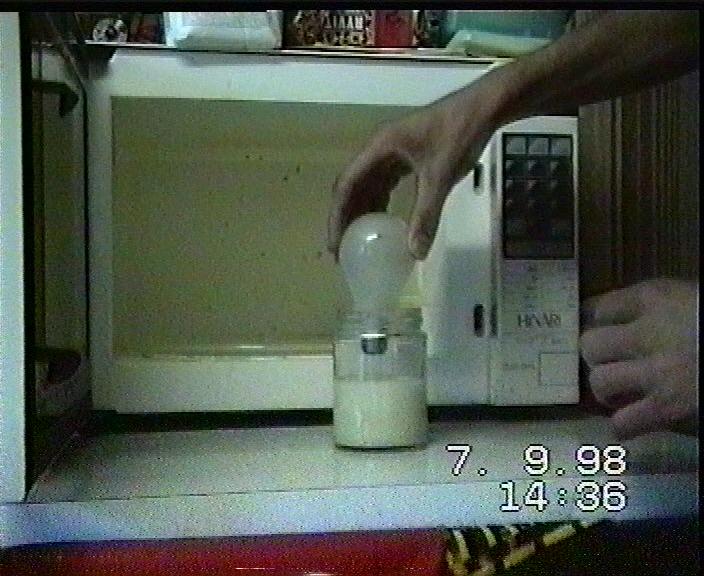 I remember seeing on the Adam & Joe show a bit where they put various things inside a microwave oven, to see what happens. They did the usual sort of stuff - something metal, a compact disc, etc. You've seen it all before, and probably tried it for yourself. One thing they microwaved was different, and somewhat bizarre. It was an ordinary lightbulb, placed upright in a glass of milk!